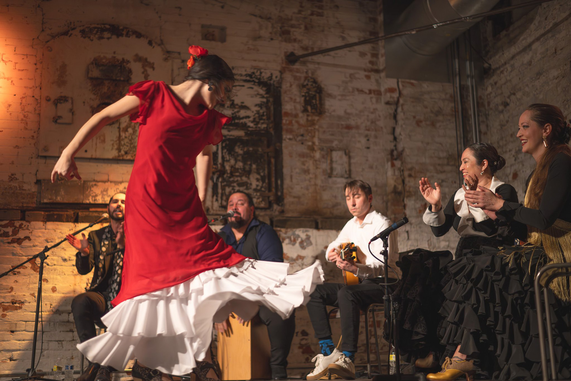 Monica Mota (Performing, Spokane County), Quiero Flamenco Tablao company, Amelia Moore, Jed Miley, Jose Moreno, Daniel Azcarate, Marlena Mizzoni, 2024, photo: Jenn Marquis Photography
