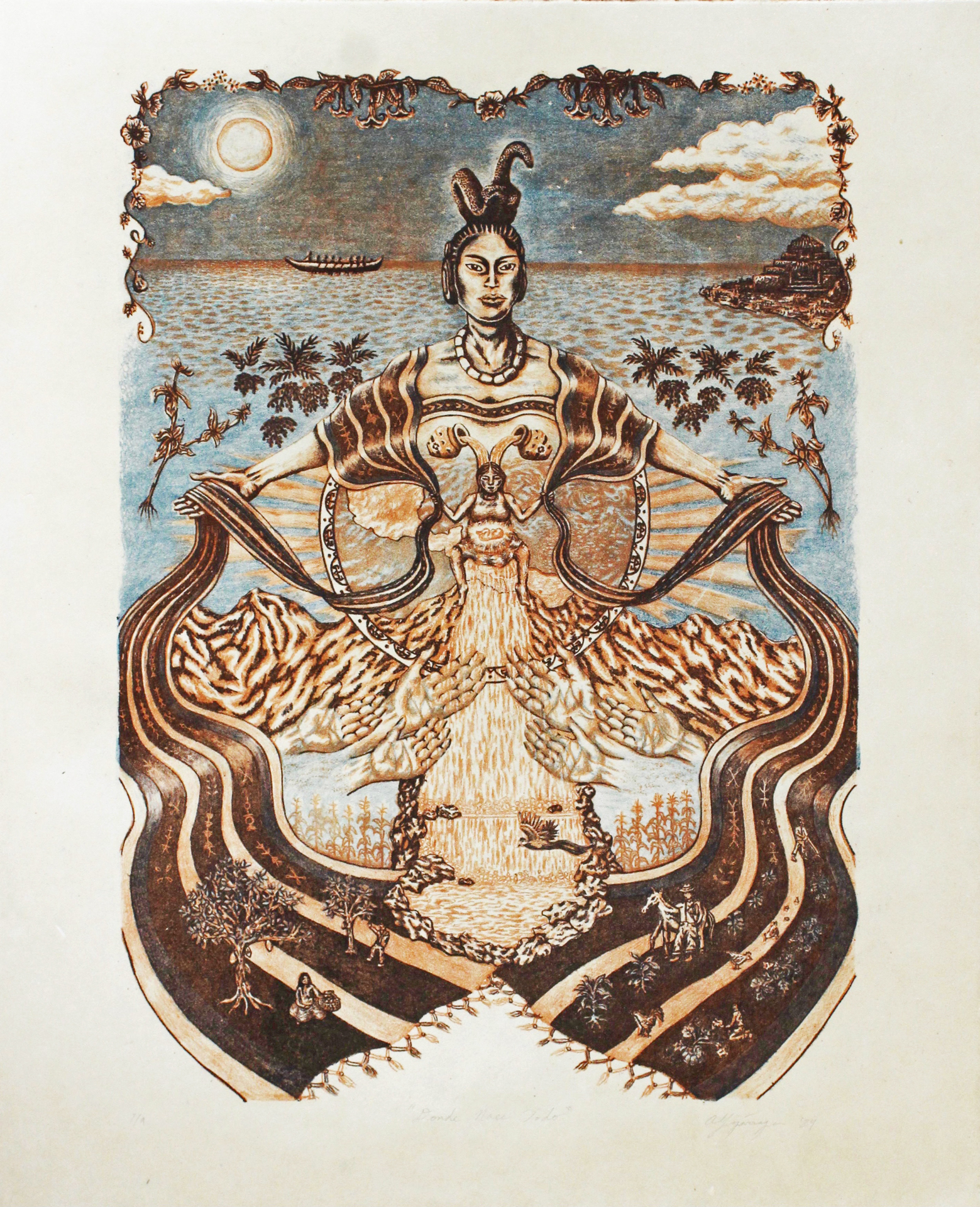 Asenath Lizárraga, Donde Nace Todo, lithograph, 20”x16”, 2024. Photo: Jeannine Xochicale Solis
