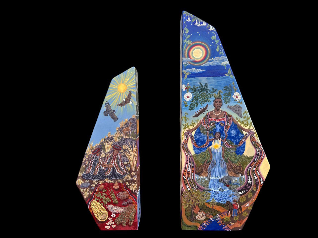 Asenath Lizárraga, La Unidad de la Tradición, acrylic on steel maquettes made by Kyle Ocean, 10” and 13” tall, 2024. Photo: Asenath Lizárraga