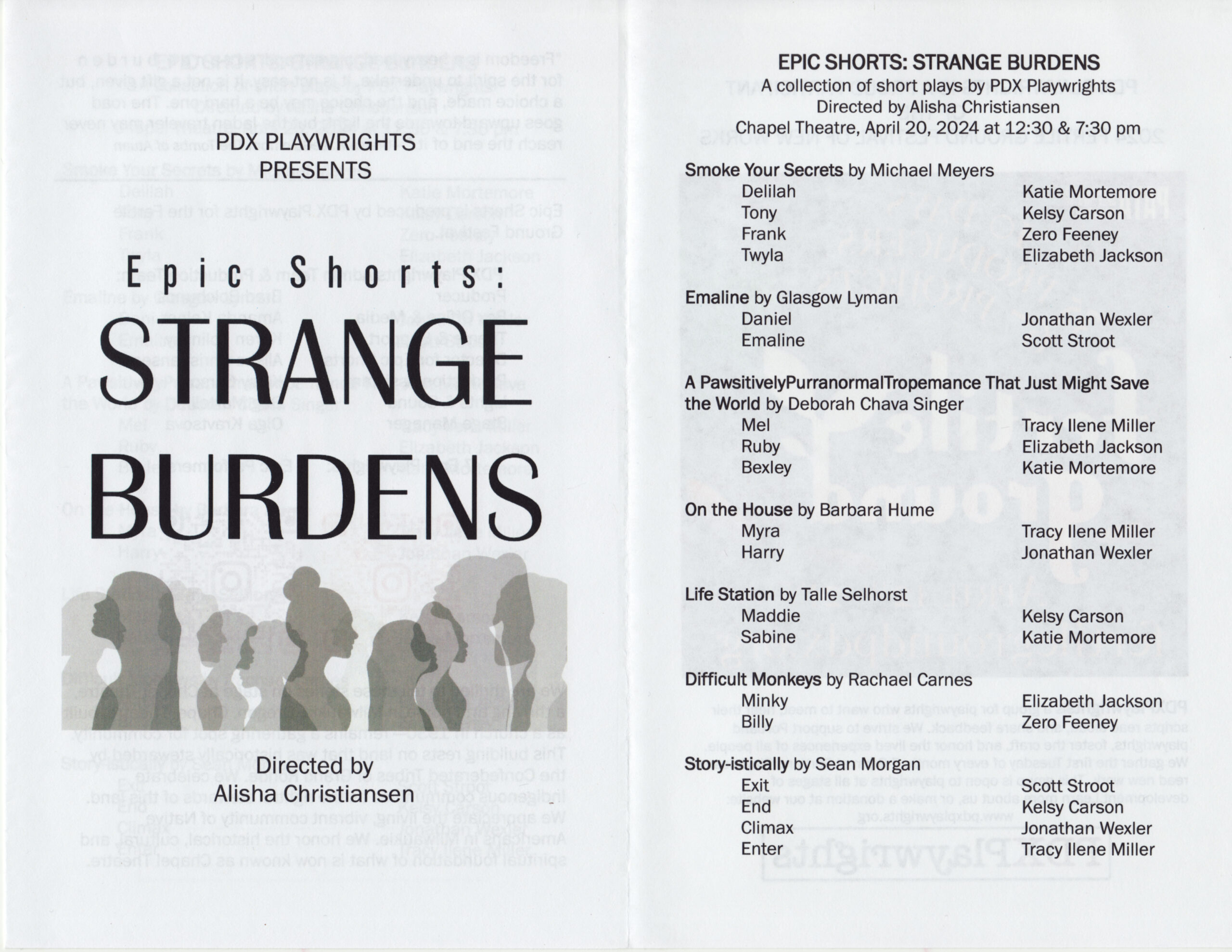 Epic Shorts Program Cover and Interior Page, PDX Playwrights, 2024