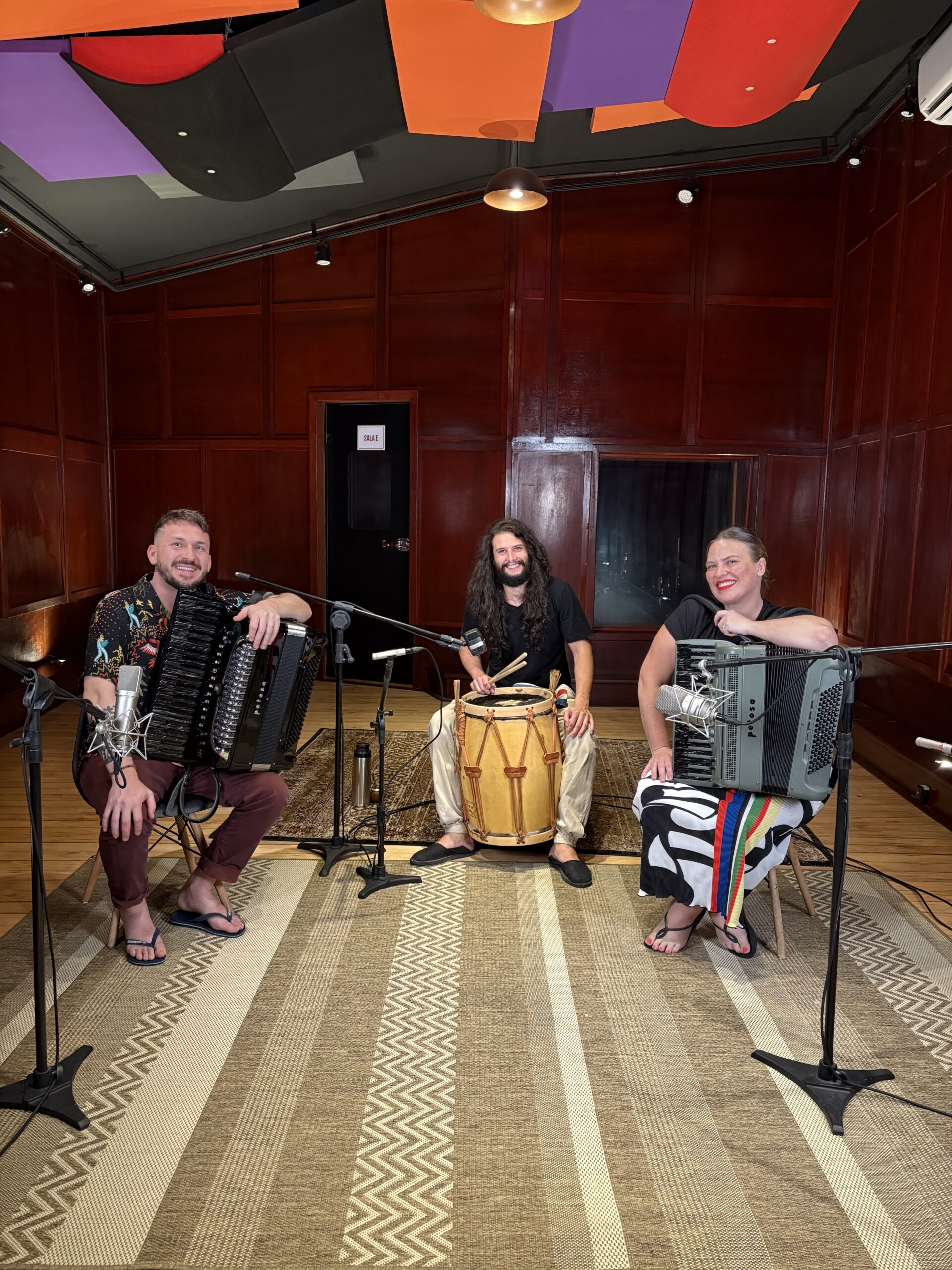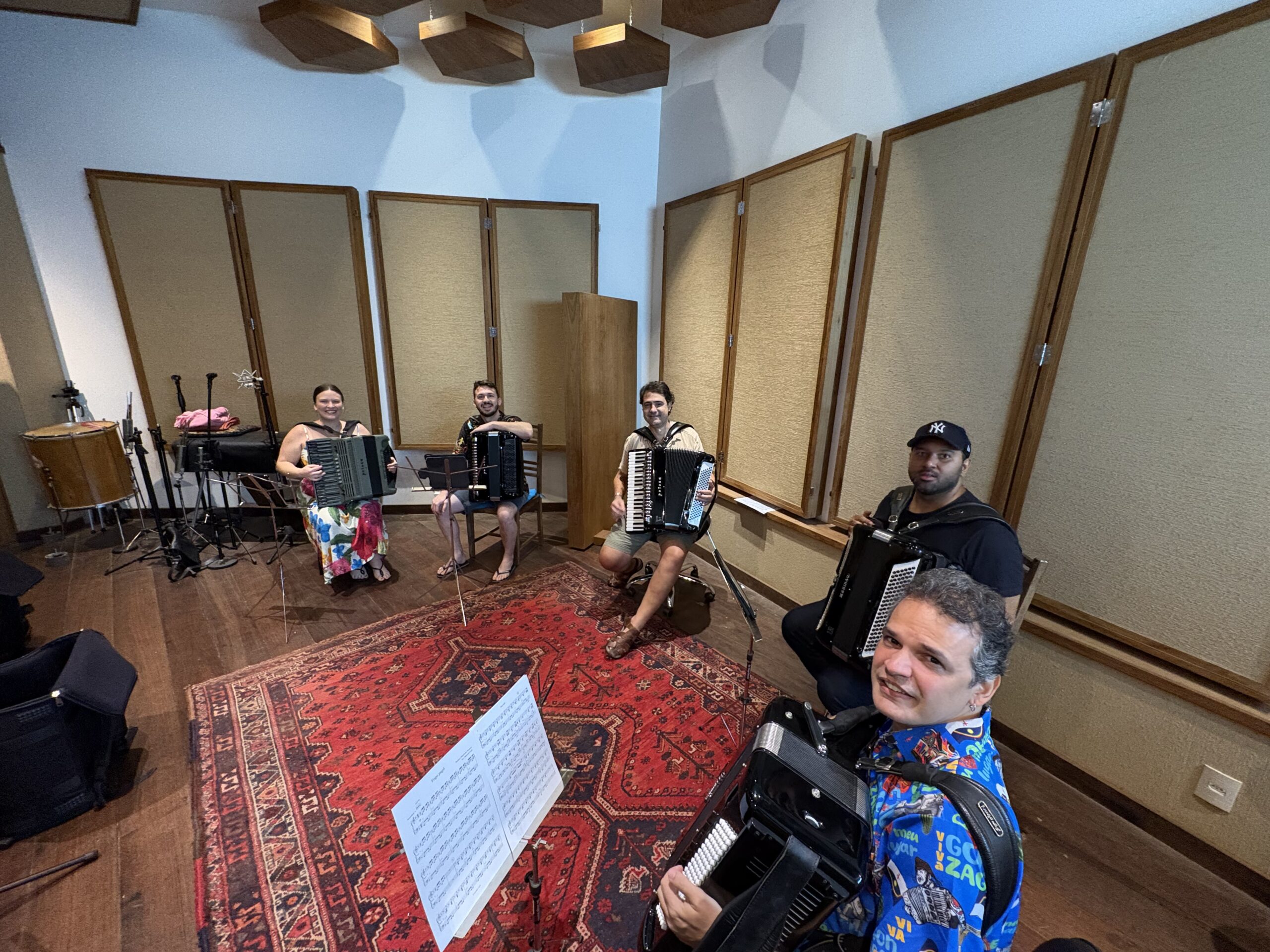 Their performances have taken them from a quiet beach in Brazil to the Trophée Mondial in Portugal, and in 2023 they were featured on the television show Sanfonas do Brasil with Rodolpho Forte. Together, they also run the Emerald City Accordion School, offering online and in-person lessons, group classes, and annual accordion camps.