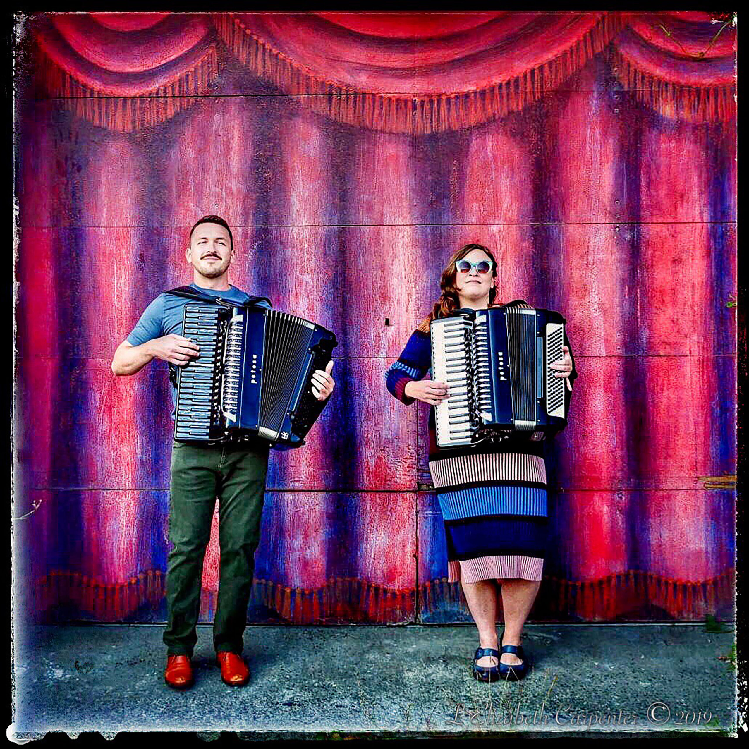 Jamie Maschler and Gabe Hall-Rodrigues first met in a fateful “meet cute” at Petosa Accordions in Seattle, where a shared love of the accordion and Brazilian music sparked both their creative partnership and, eventually, their marriage. That moment marked the beginning of Creosote, their dynamic accordion duo. For over eight years, they have blended their backgrounds in Brazilian, latin, jazz, tango, French musette, and other genres to create fresh arrangements and original music for the accordion.