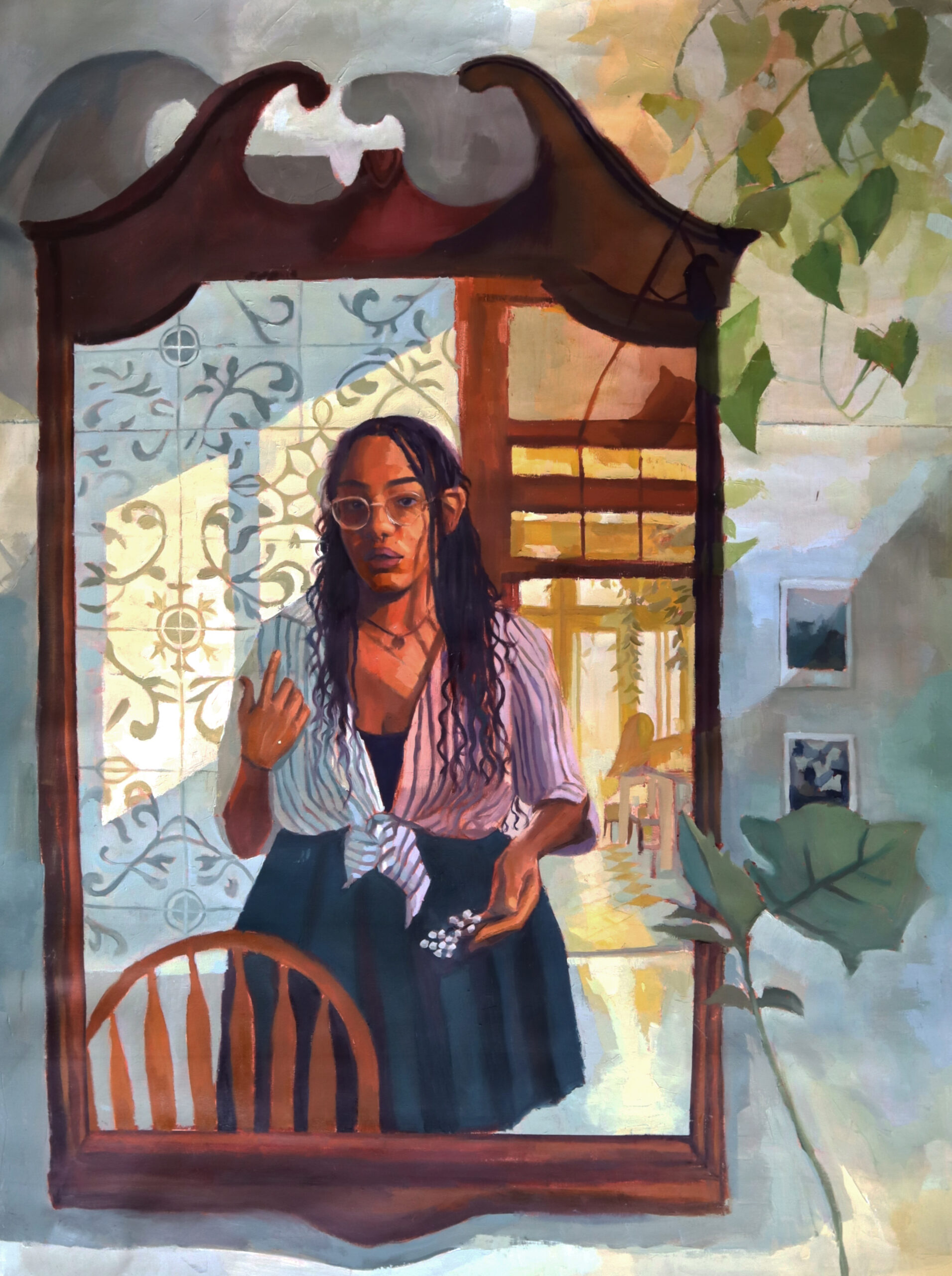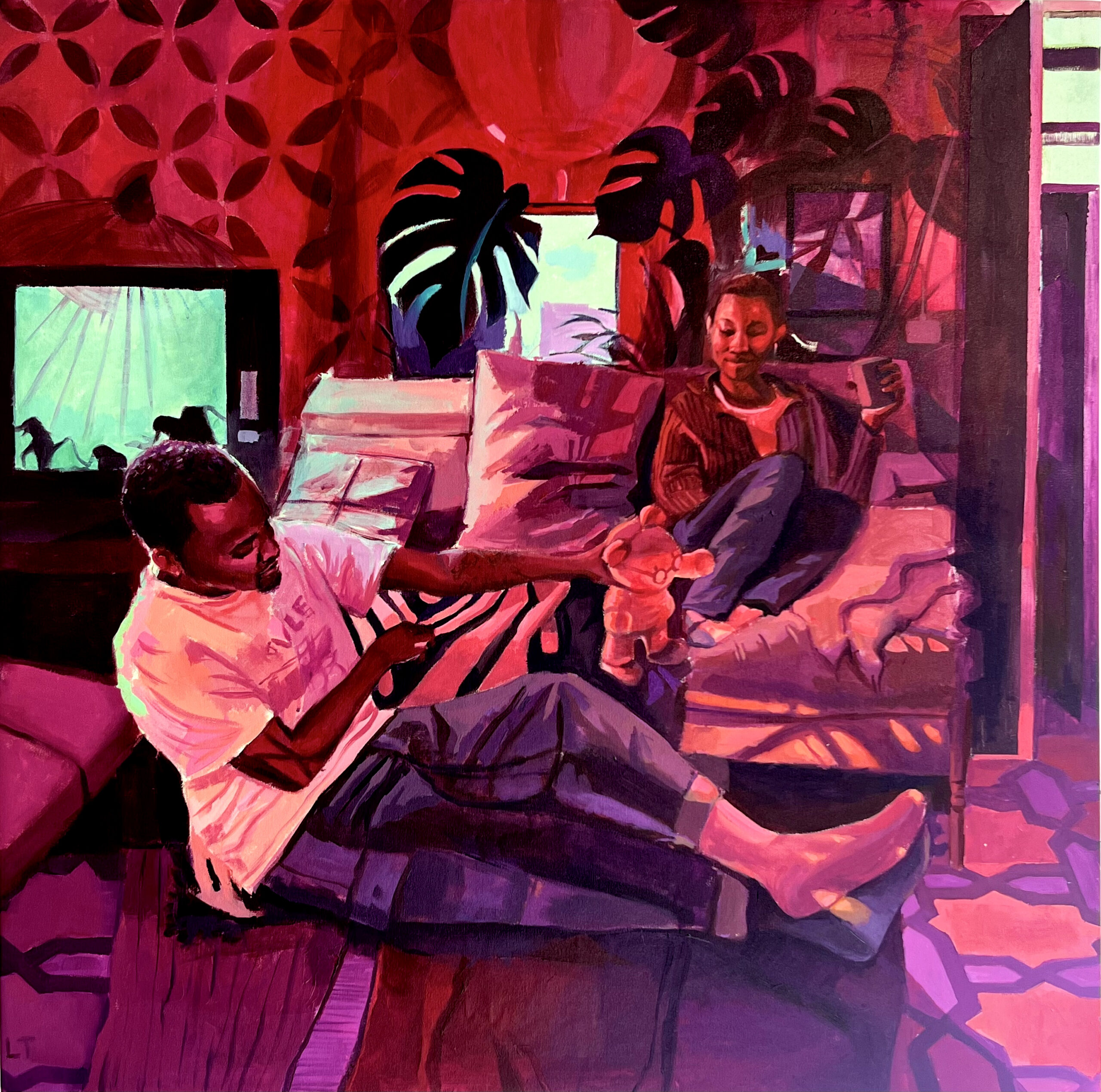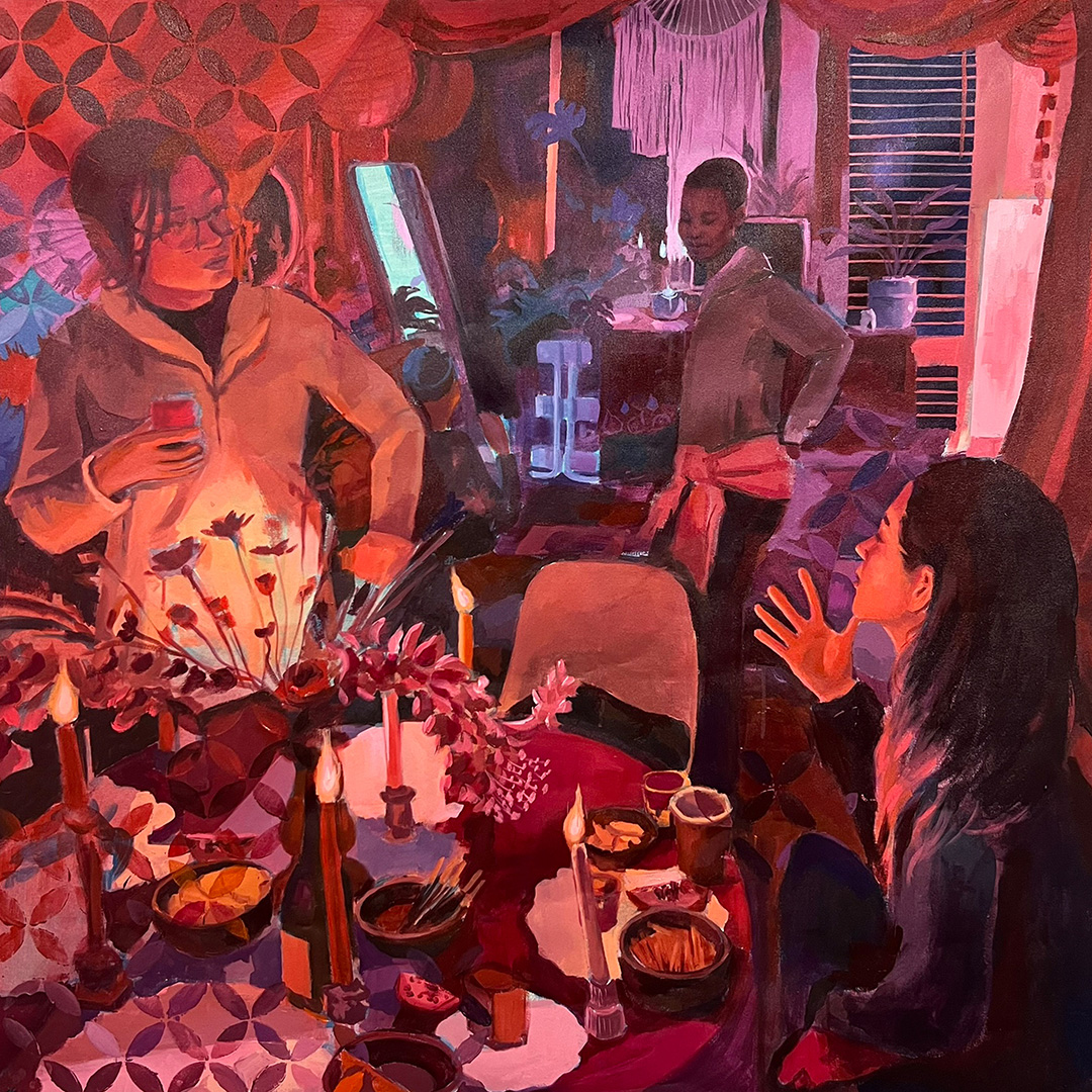 Lila Alexis Thomas (she/they) is a Seattle-based figurative painter and educator from Southern Louisiana. Rooted in community, Black and queer joy, rest, and the deep, unspoken understanding that comes from gathering together, Lila’s work captures moments of intimacy, connection, and ease. Their paintings offer a counter-narrative to the historical erasure of Black and queer identities in Western art, centering the Black figure in spaces of tenderness, sovereignty, and belonging. Lila earned their BFA in Drawing and Painting from Nicholls State University.