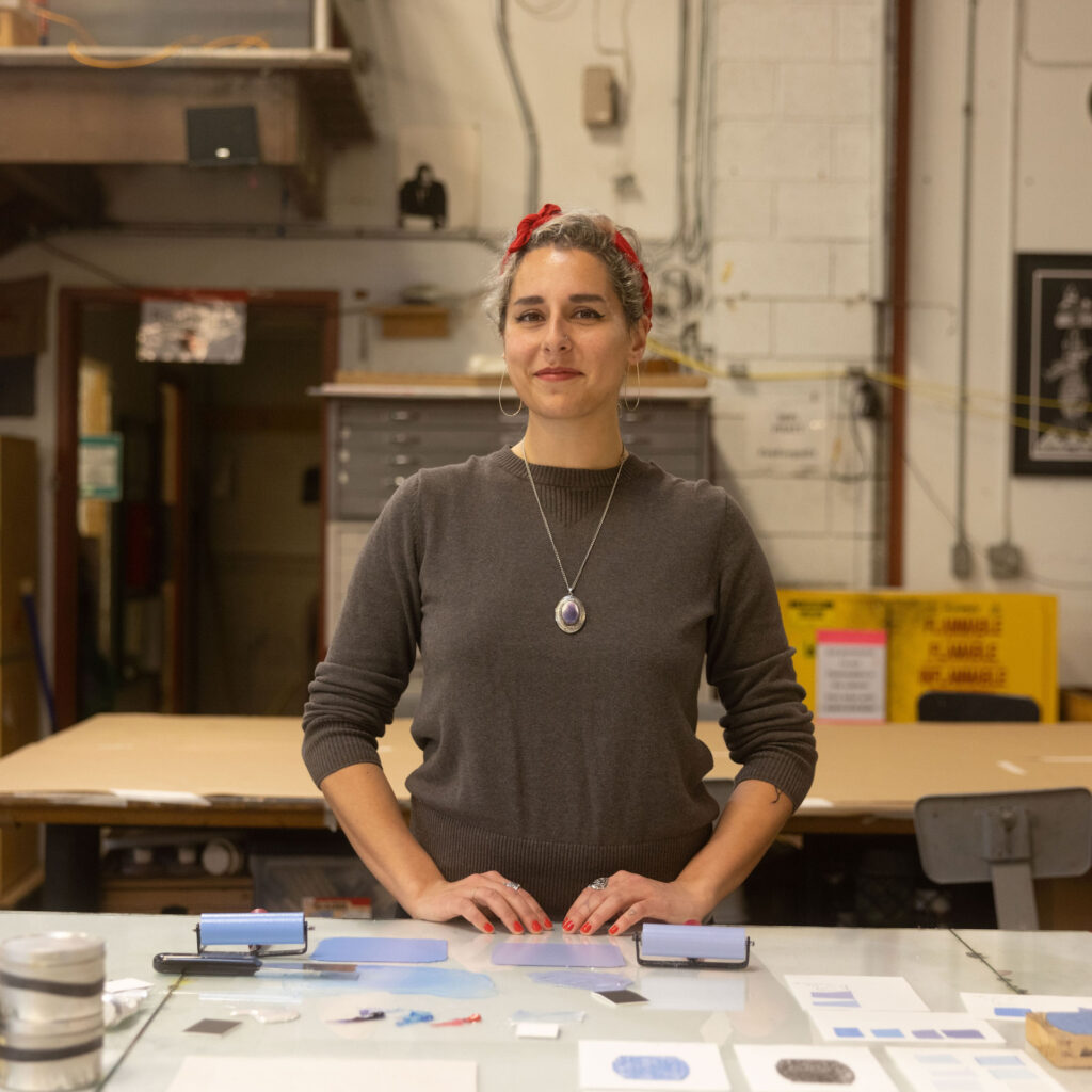 Nikki Jabbora – Barber (she/her), a gay Seattle-based printmaker and teaching artist, was born in Bellingham, WA to a Lebanese-German mother and Anglo-Swedish father. Printed like tattoos on skin, Nikki uses symbols that represent her mixed race heritage, stories from her childhood, the Pacific Northwest, and Queer Culture, to cover her hand-pulled woodblock prints. With this storytelling, she seeks to remove the passive acceptance of accessible exoticism and redefine being a mixed race woman who is white-adjacent. Nikki widens the viewfinder for others to include her life’s intersections of gender, race, and sexuality.