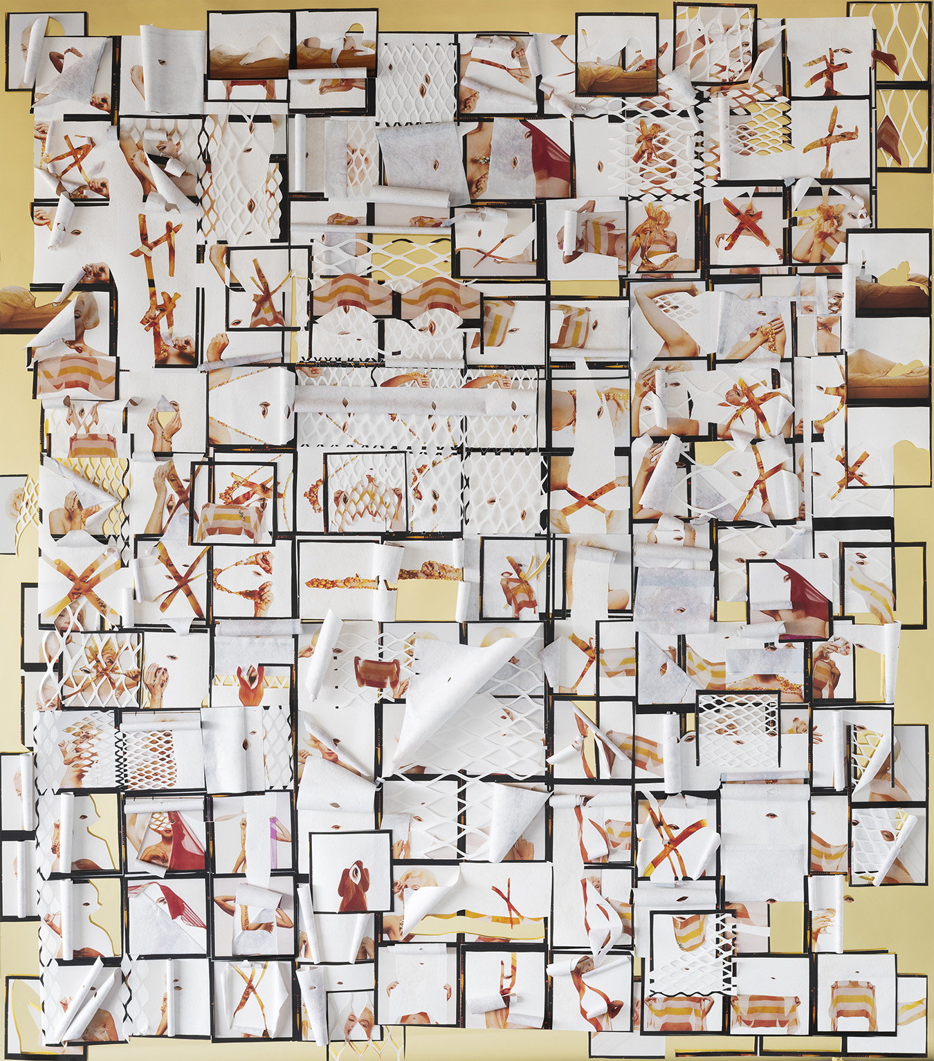 Natalie Krick, Our mark making, collaged chromogenic prints, gold mirror 26 x 30 inches, 2024. Photo: Natalie Krick